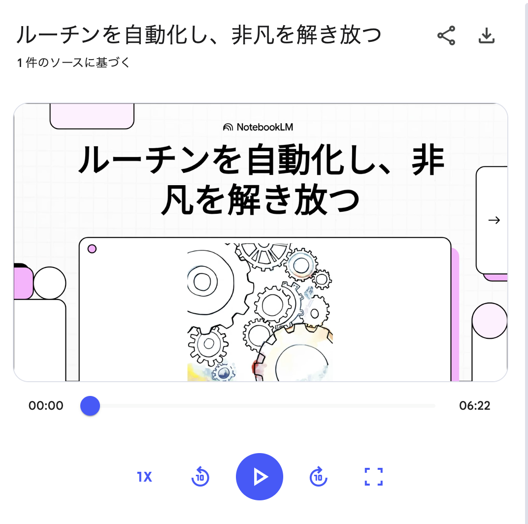 (3)NotebookLMで「解説動画」「マインドマップ」「概要レポート」の3つを作りました。