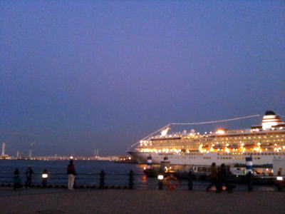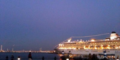 赤レンガ倉庫に向けて歩いていると、港に大きな船が。