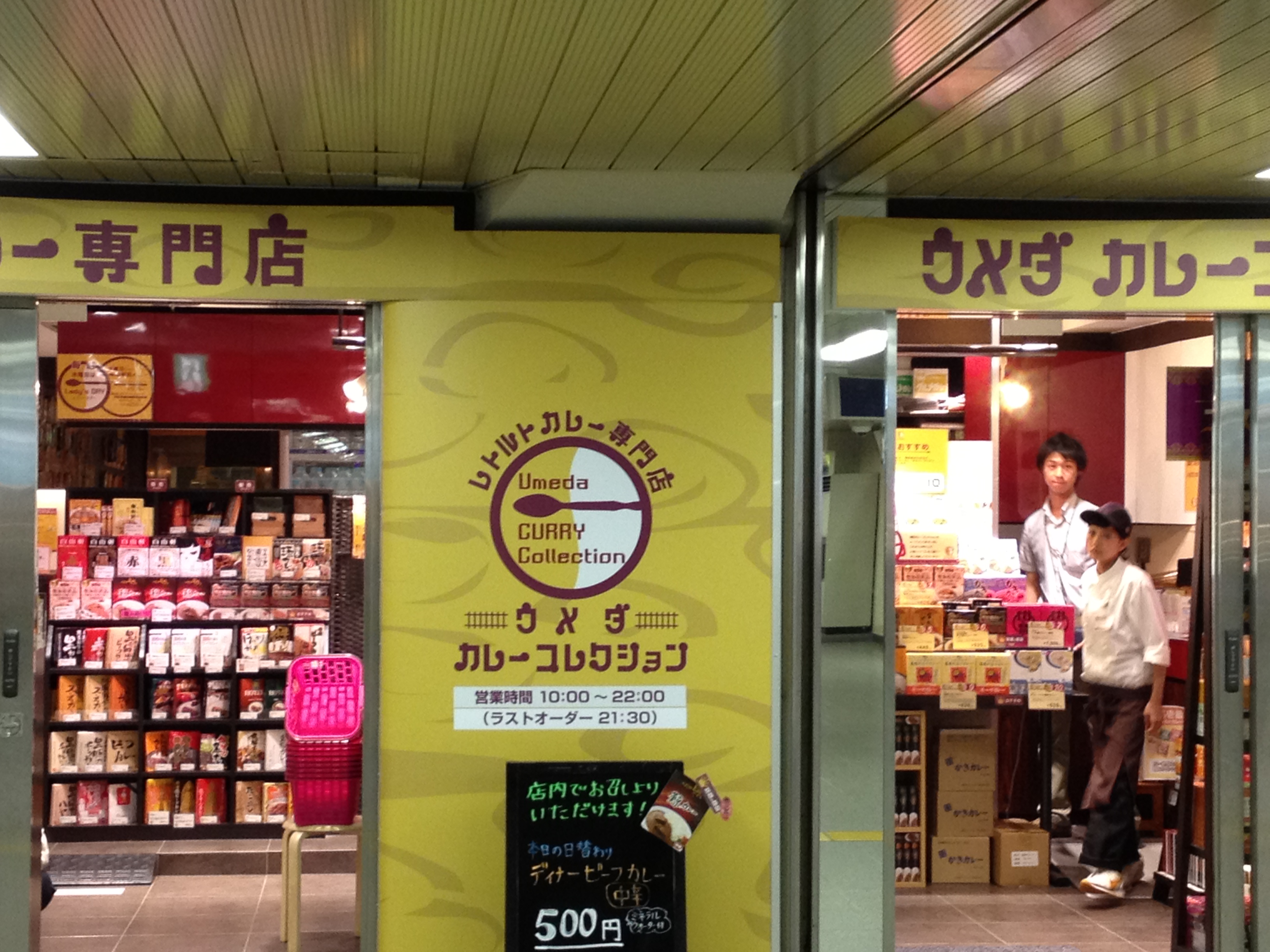 で、レトルトカレー専門店。改札横の、係の人のいるゾーンから無料で構内へ入れる。