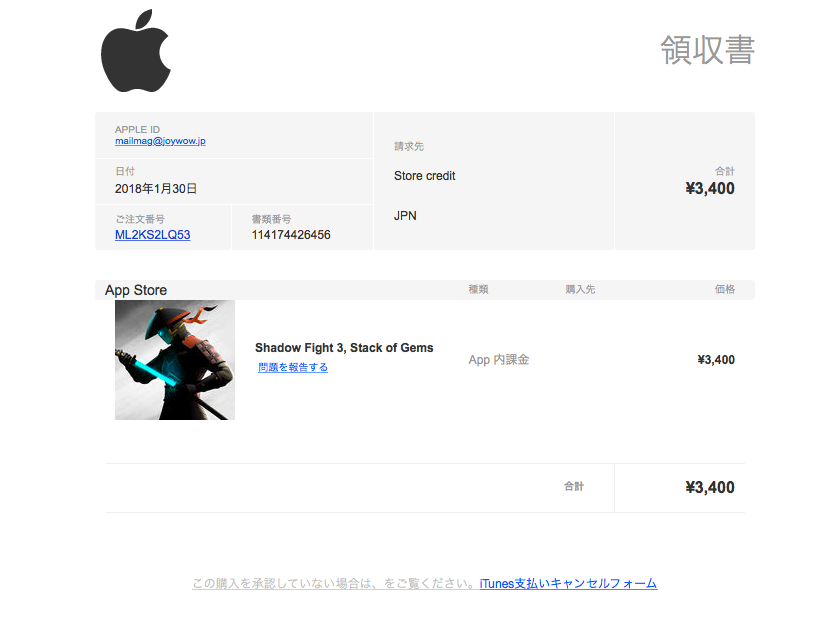 「Appleからの領収書です」