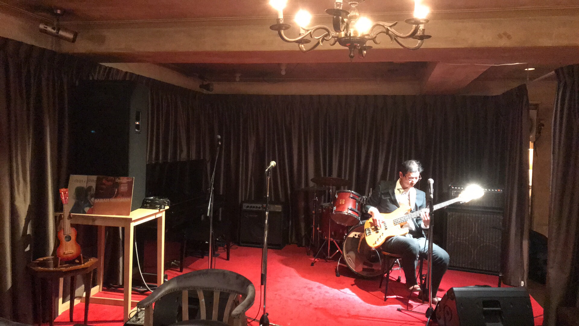 ウクレレ、これまでは書庫に一人ぼっちでいたのが、音楽に囲まれて、