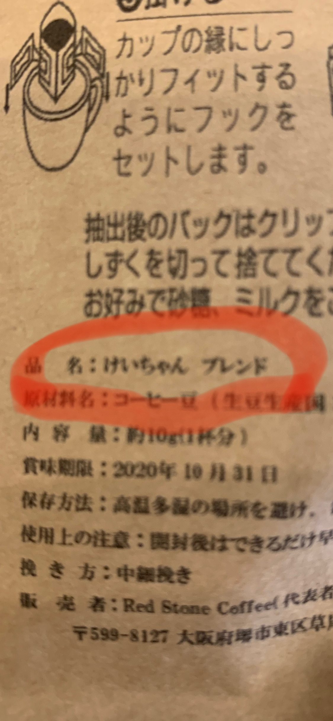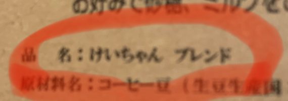 そして、パックには「品名:けいちゃん ブレンド」とニクい遊びが。